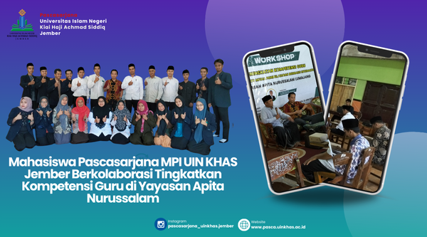Lumajang,21 Juni 2022-Dalam upaya meningkatkan kualitas pendidikan di Lumajang, mahasiswa Pascasarjana Manajemen Pendidikan Islam (MPI) Universitas Kiai Haji Achmad Siddiq Jember (UIN KHAS Jember) menginisiasi sebuah workshop peningkatan kompetensi guru. Kegiatan yang berlangsung pada Rabu, 21 Juni 2022, ini diselenggarakan di Yayasan Apita Nurussalam dan diikuti oleh seluruh stakeholder di yayasan tersebut.