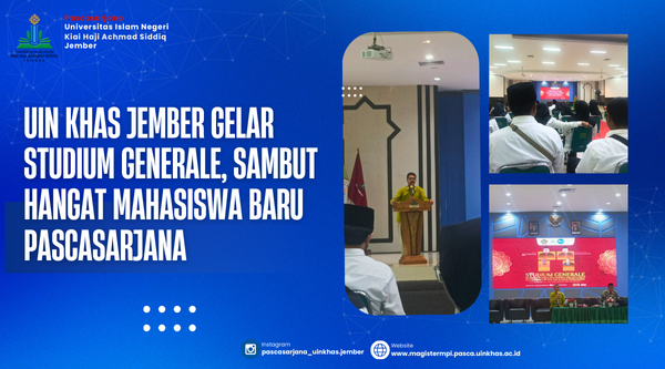 Jember, 21 September 2024-Universitas Islam Negeri Kiai Haji Achmad Siddiq Jember (UIN KHAS Jember) sukses menggelar Studium Generale sebagai bagian dari rangkaian orientasi mahasiswa baru pascasarjana. Kegiatan yang berlangsung pada 21 September 2024 di Gedung GKT lantai 3 ini dihadiri oleh selu...