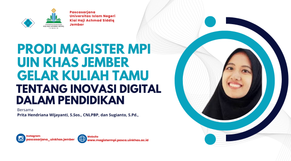 Program Studi Magister Manajemen Pendidikan Islam (MPI) Universitas Islam Negeri Kiai Haji Achmad Siddiq Jember sukses menyelenggarakan Kuliah Tamu dengan tema “Inovasi Pengetahuan & Digitalpreneurship dalam Manajemen Pendidikan berbasis digital sebagai Bentuk Perkembangan Manajemen mas...