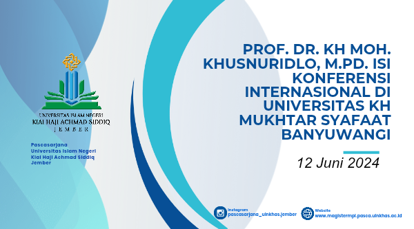 Jember - Prof. Dr. KH Moh. Khusnuridlo, M.Pd., dosen Magister Manajemen Pendidikan Islam (MPI) UIN KHAS Jember, menjadi salah satu pengisi dalam International Conference yang digelar di Universitas KH Mukhtar Syafaat Banyuwangi. Konferensi internasional ini mengangkat tema "Education and Sci...