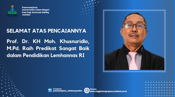 Jember - Kabar membanggakan datang dari Universitas Islam Negeri Kiai Haji Achmad Siddiq (UIN KHAS) Jember. Salah satu dosen terbaiknya, Prof. Dr. KH Moh. Khusnuridlo, M.Pd., berhasil menyelesaikan Program Pendidikan Reguler Angkatan (PPRA) LV di Lembaga Ketahanan Nasional Republik Indonesia (Lem...