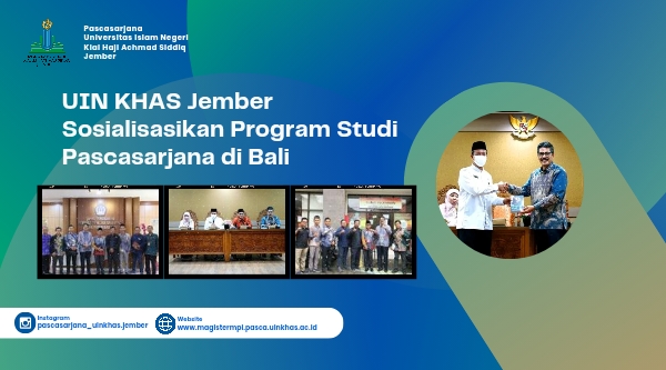 Bali, 17 Januari 2024-Universitas Islam Negeri Kiai Haji Achmad Siddiq Jember (UIN KHAS Jember) secara aktif melakukan sosialisasi program studi di wilayah Bali. Kegiatan ini bertujuan untuk memperkenalkan lebih luas program studi yang ditawarkan oleh UIN KHAS Jember, khususnya pada jenjang Pasca...